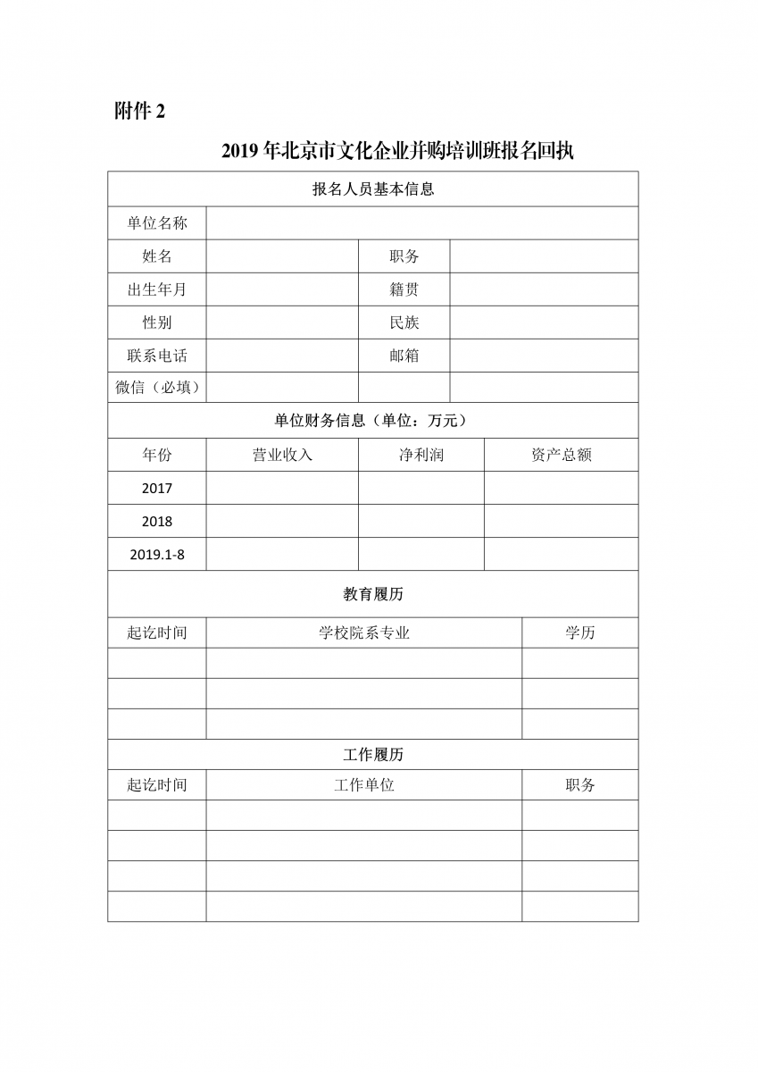 2.北京文化企业上市培育基地2019年第二期培训班报名回执